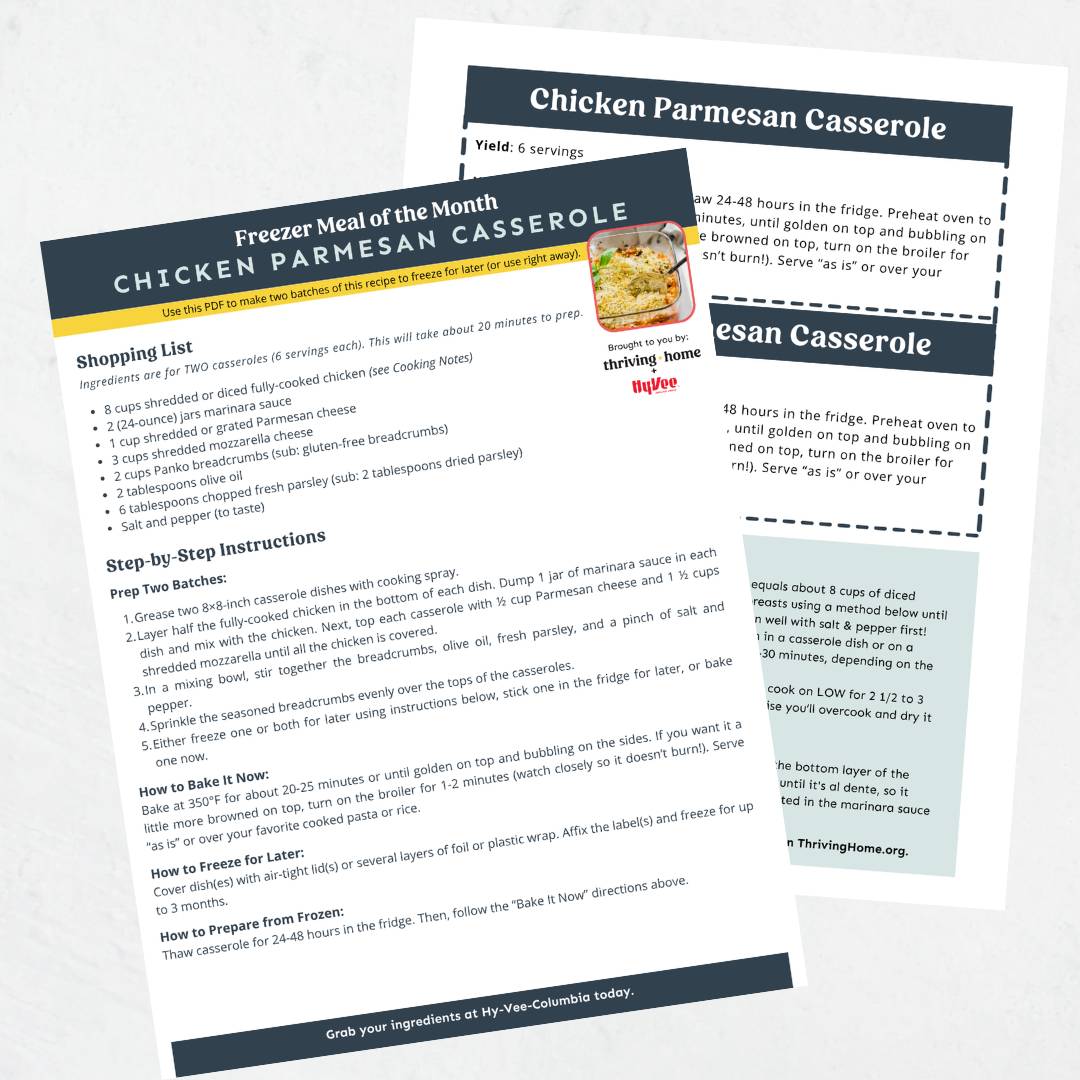 This printable guide includes shopping list, instructions, and freezer labels and will be sent directly to your inbox (check junk folder!).