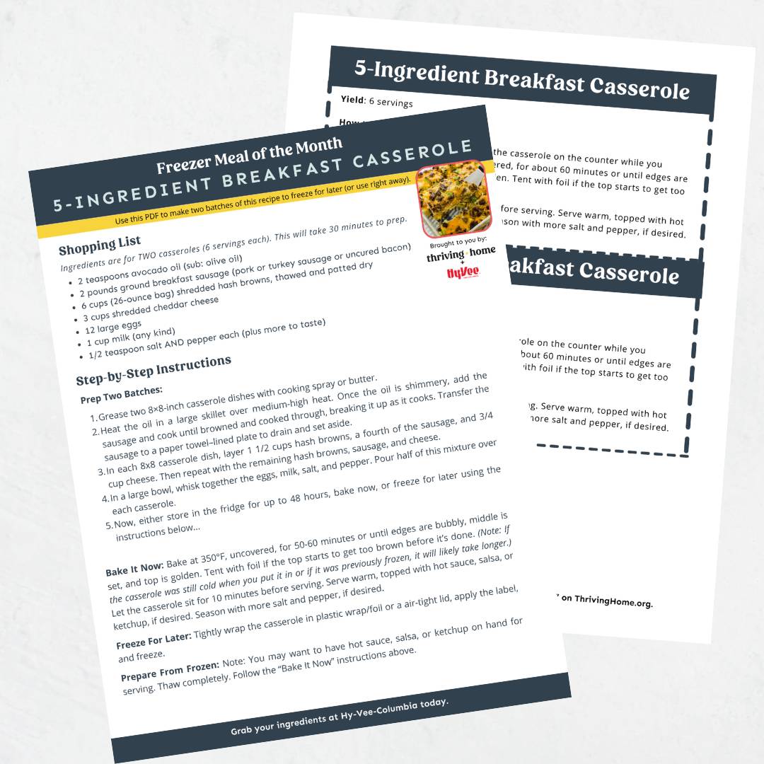 This printable guide includes shopping list, instructions, and freezer labels and will be sent directly to your inbox (check junk folder!).